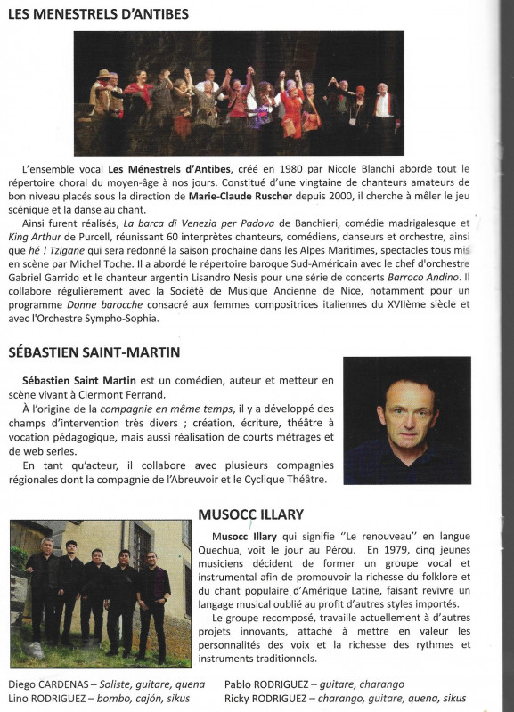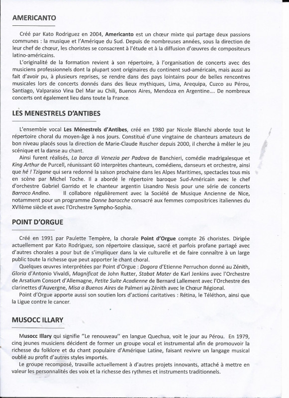Puis, nous avons continué avec un concert à Vollore-Ville et un autre à Châteaugay. A ces deux derniers concerts, nous avons eu le plaisir d'accueillir l'ensemble vocal Les Menestrels d'Antibes.