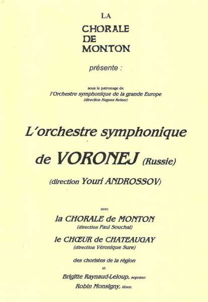 En première partie du concert, l'Orchestre Symphonique de Voronej (Russie) dirigée par Youri Androssov a interprété des Pièces Symphoniques du 19ème siècle. Smetana, Rossini, Brahms, Glinka et Tchaïkovski figuraient au programme.