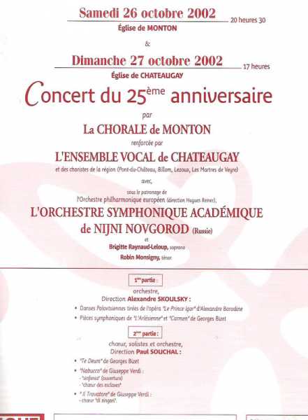 Octobre 2002 - Participation au 25ème anniversaire de la Chorale de Monton -