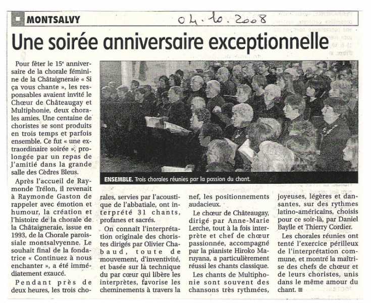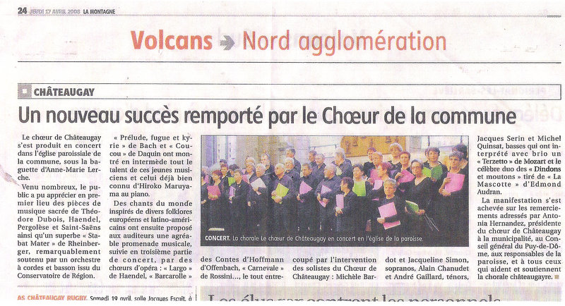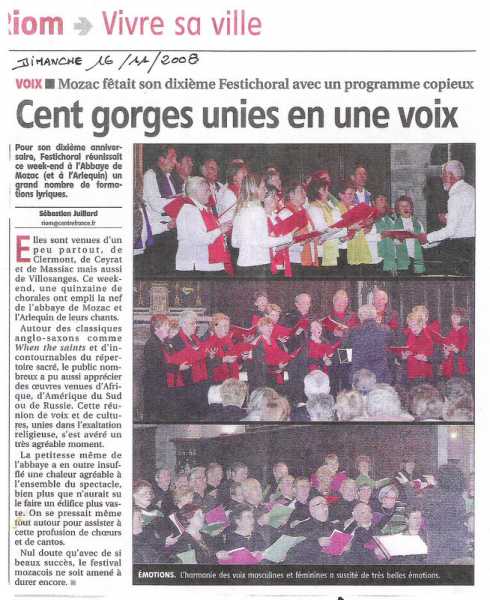 Novembre 2008 - Participation au Xème Festichoral de Mozac.