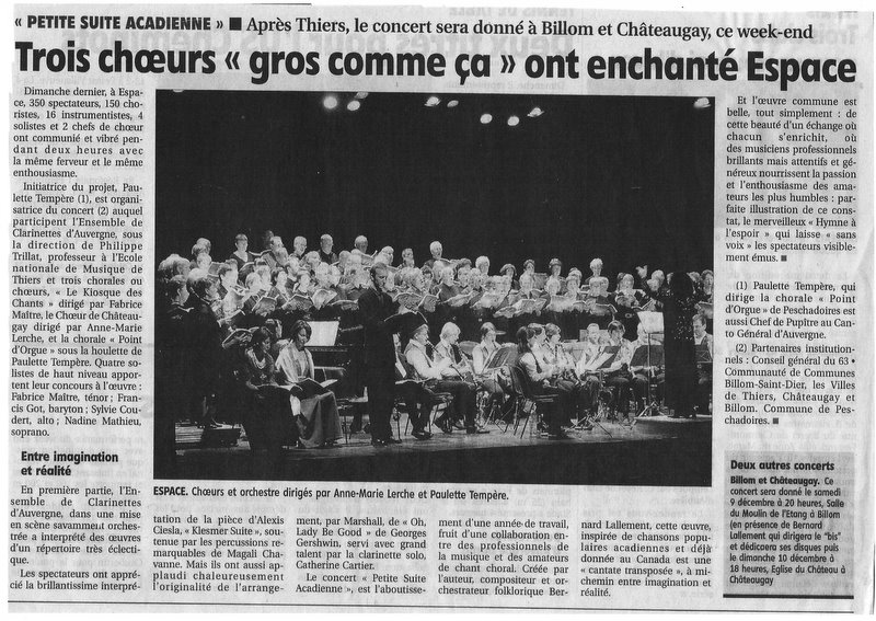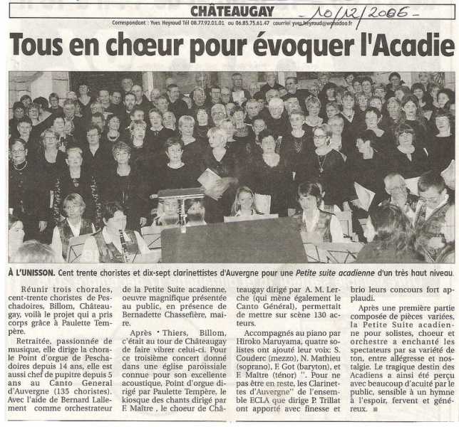 Décembre 2006 - Chateaugay - Thiers - Billom - Petite suite Acadienne