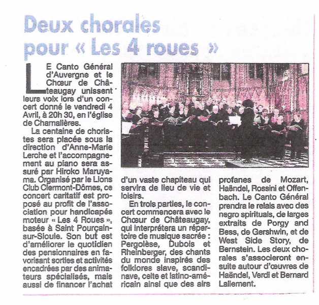 Avril 2008 - Chamalières - Concert pour l'Association "Les 4 Roues"
