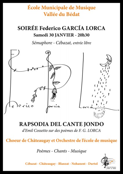 Le Choeur de Chateaugay et l'Orcheste d'harmonie de Yann Maniez, qui dirige l'école de musique de Cébazat-Châteaugay-Blanzat-Nohanent-Durtol, réunissent choristes et musiciens pour vous emmener à Grenade dans cette Andalousie si chère au poète Federico Garcia-Lorca*.