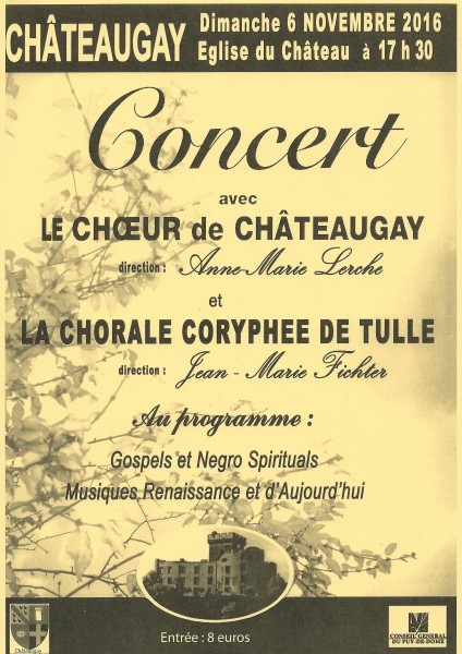 Le choeur de châteaugay accueillera la Chorale Coryphée* de Tulle pour un concert de musiques partagées.